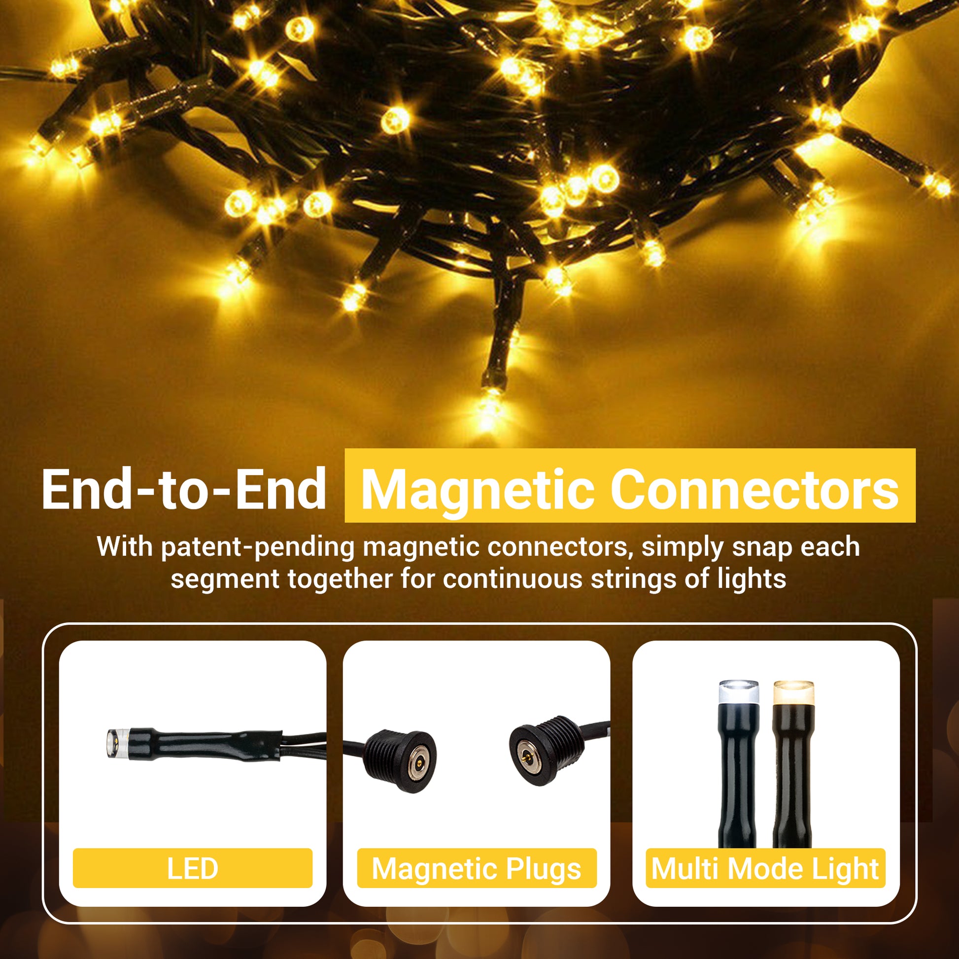 REVOLUTIONARY MAGNETIC STRING LIGHTS - Features patent-pending magnetic connectors for hassle-free installation. Simply snap each segment together for continuous plug in string lights. No more tangled messes - these string lights stay neatly coiled and magnetically connected for easy setup and storage.